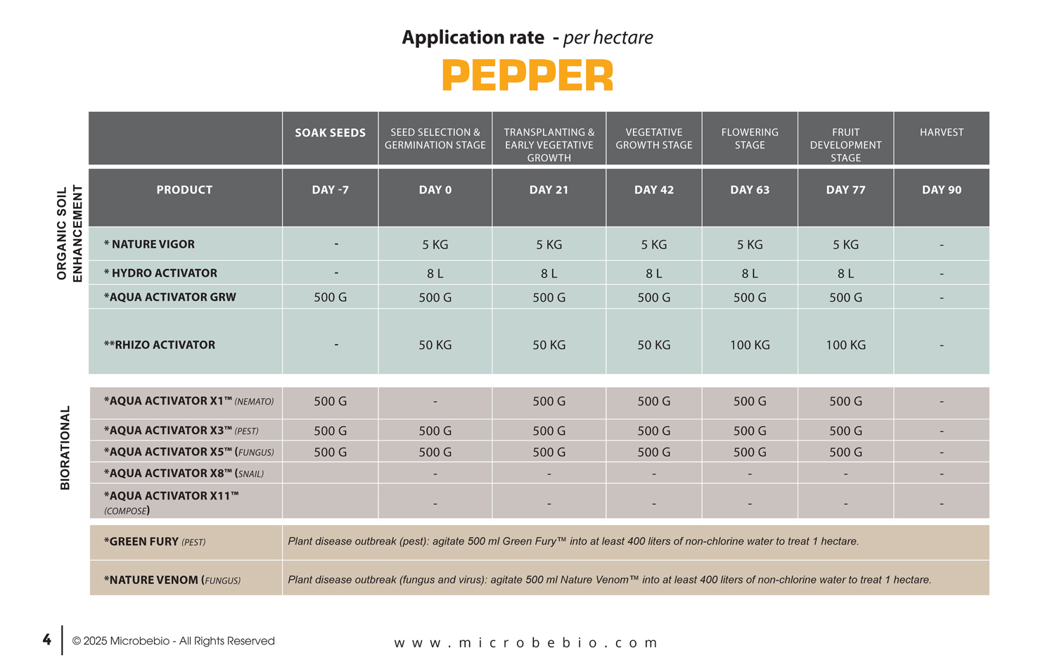 Microbial fertilizer Organic Fertilizer USA > Application Program For Pepper
