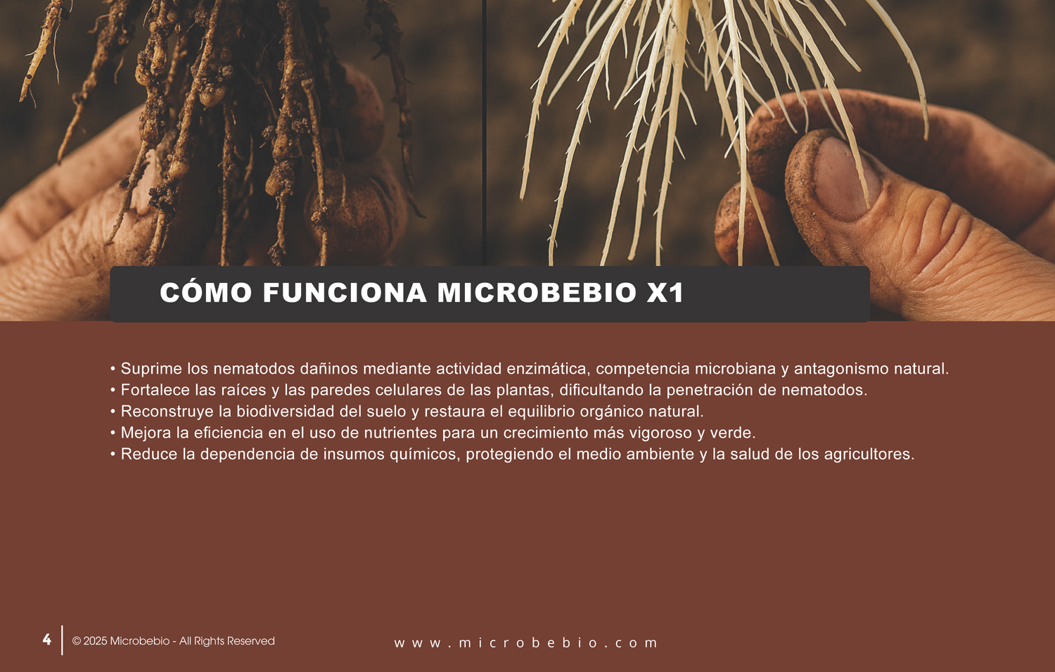 Elige MicrobeBio® Bionematicide X1 para proteger las raíces, obtener cultivos de excelencia y un futuro agrícola más verde y robusto.